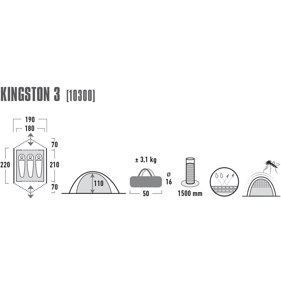 Namiot turystyczny dla 3 osób firmy High Peak. Stelaż z lekkiego i trwałego włókna szklanego. Wysokiej jakości materiał o dobrej wodoodporności i klejone szwy zapewniają ochronę przed wodą, wilgocią i wiatrem. Okienko z siatką wentylacyjną. Moskitiera zabezpiecza przed niechcianymi owadami. Podłoga namiotu izoluje od chłodu.