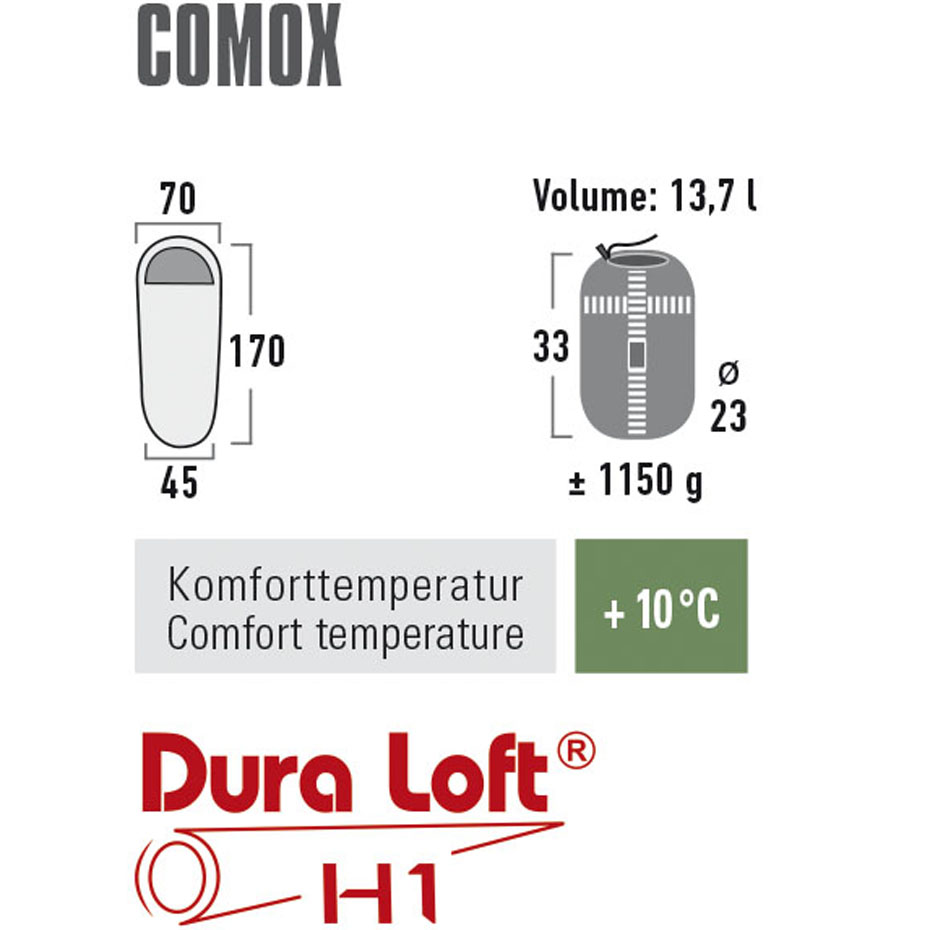 Śpiwór Comox High Peak idealny na różne wypady biwakowe. Nie krępuje ruchów. Zajmuje niewielki rozmiar. Śpiwór posiada odpowiednie właściwości techniczne. Zastosowano Dura Loft utrzymujący ciepło. Wyposażony w wyściełany kaptur. Zapakowany w worek.