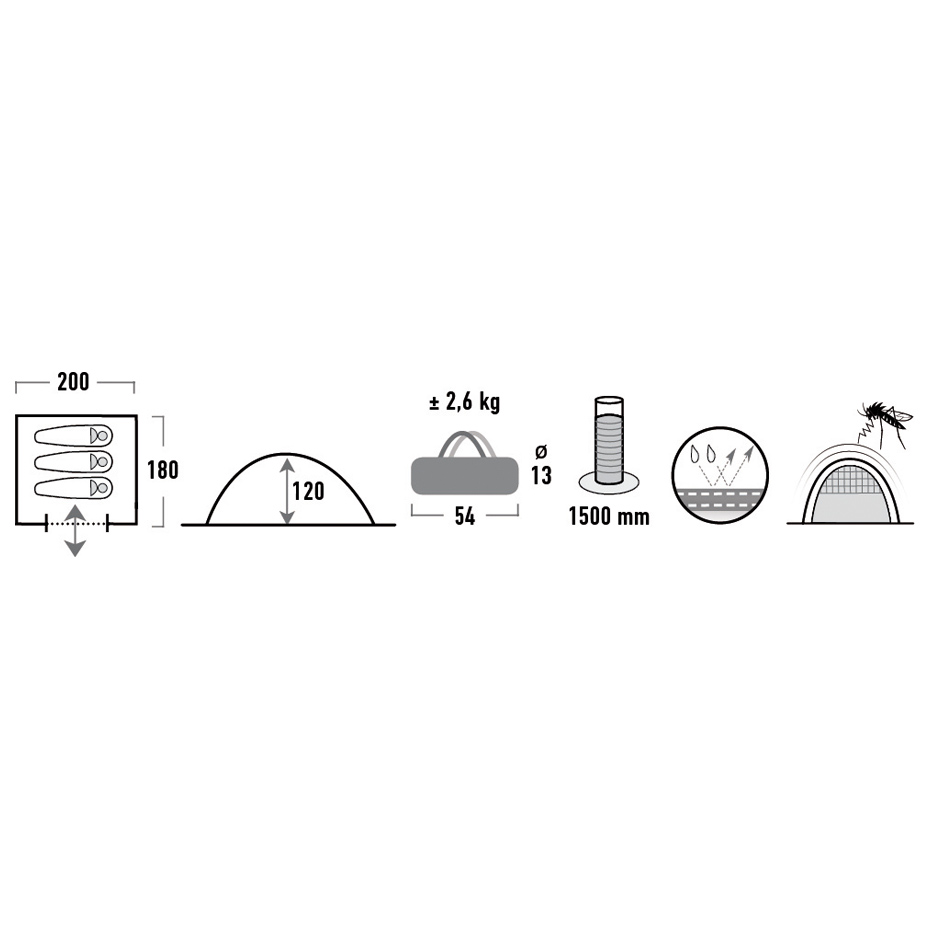 Lekki, łatwy i szybki w obsłudze namiot dedykowany dla trzech osób. Duża przestrzeń użytkowa i szerokie wejście z daszkiem gwarantuje wygodę użytkowania. Namiot bardzo prosty w rozkładaniu oraz składaniu, w wygodnym pokrowcu, ułatwiającym transport.