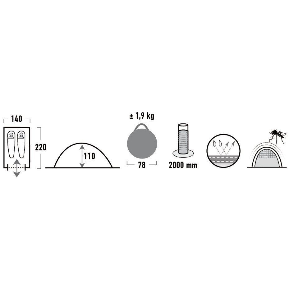 Lekki i szybki w obsłudze namiot dla dwóch osób. Duża przestrzeń użytkowa i szerokie wejście zapewniają komfort użytkowania. Łatwy w rozkładaniu i składaniu. W zestawie szpilki do podłoża.