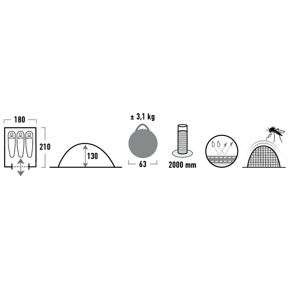 Lekki i szybki w obsłudze namiot dla trzech osób. Duża przestrzeń użytkowa i szerokie wejście z daszkiem zapewniają komfort użytkowania. Łatwy w rozkładaniu i składaniu. W zestawie szpilki do podłoża.