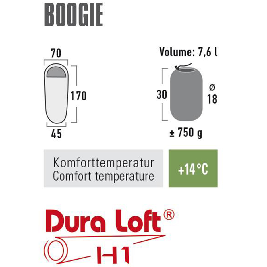 Młodzieżowy śpiwór Boogie High Peak sprawdzi się podczas wyjazdów na biwak czy obóz. Wypełnienie Dura Loft H1 jest odporne na rozdarcia i utrzymuje ciepło. Dwustronny zamek błyskawiczny znajdujący się po lewej stronie. Worek kompresyjny.