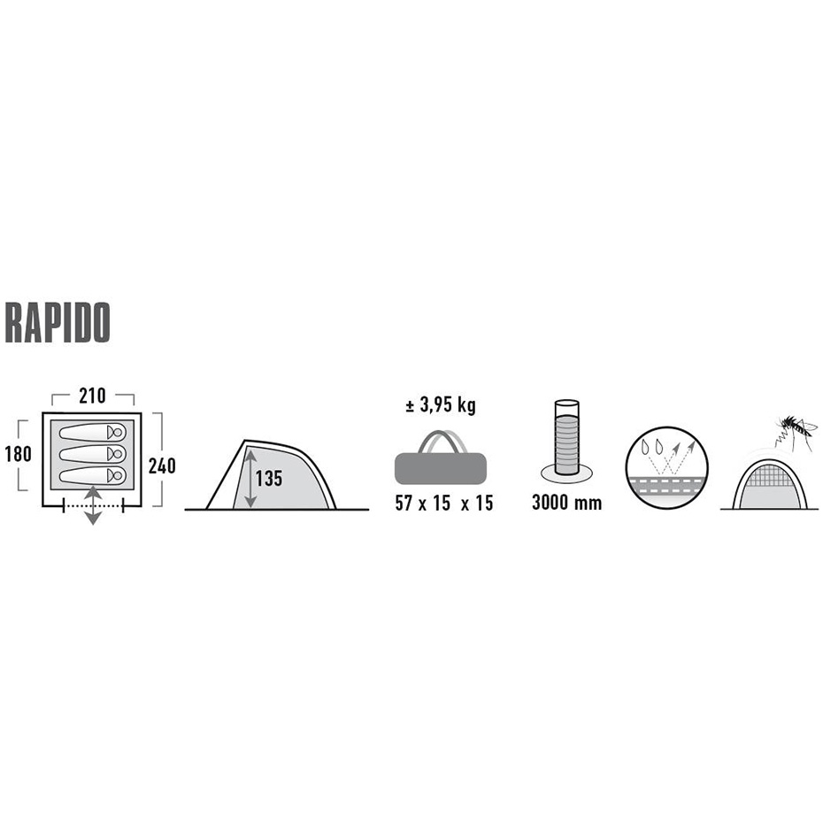 Namiot turystyczny dla 3 osób High Peak sprawdzi się podczas biwakowania. Konstrukcja została wykonana z trwałego materiału o właściwościach wodoodpornych. Laminowane szwy. Stelaż z włókna szklanego. Spora sypialnia. Moskitiera. Wewnętrzna kieszonka. Uchwyt na lampkę. Całość zapakowano w praktyczny pokrowiec. Dwupowłokowy.