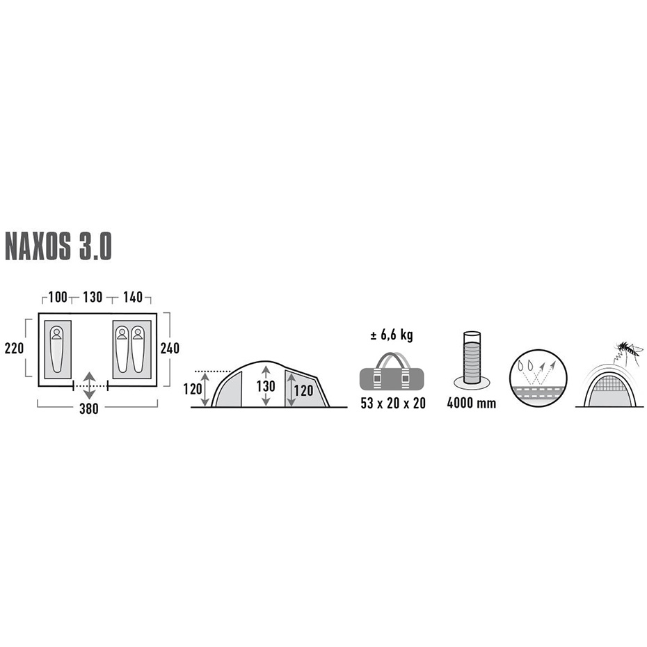 Namiot turystyczny dla 3 osób High Peak sprawdzi się podczas biwakowania. Konstrukcja została wykonana z trwałego materiału o właściwościach wodoodpornych. Laminowane szwy. Stelaż z włókna szklanego. Spora sypialnia. Moskitiera. Wewnętrzna kieszonka. Uchwyt na lampkę. Całość zapakowano w praktyczny pokrowiec. Dwupowłokowy.