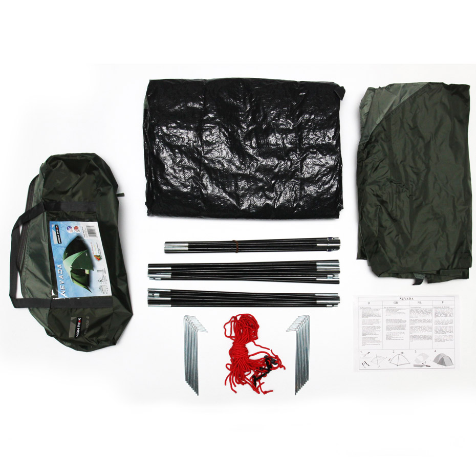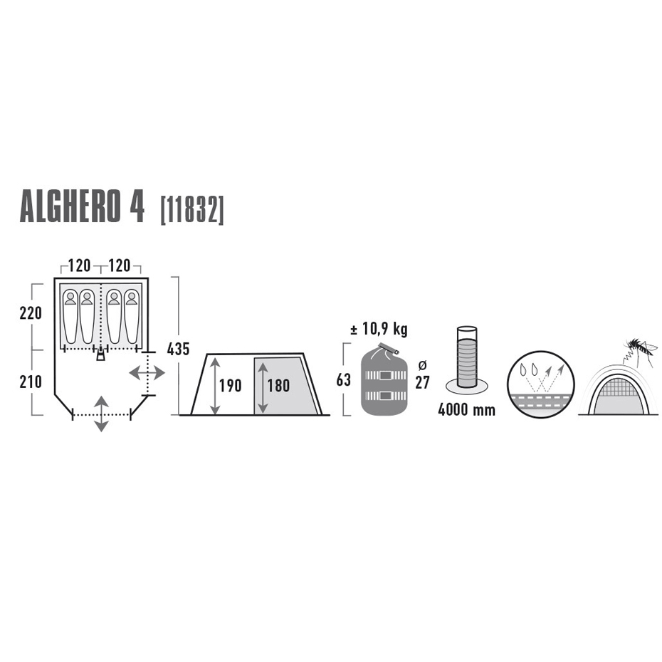 Rodzinny namiot pięcioosobowy z dużym przedsionkiem. Przedsionek z podłogą może być wykorzystany jako kuchnia czy pomieszczenie gospodarcze. Wejście wyposażone jest w moskitierę. Stalowe słupki znajdujące się w zestawie pozwalają na utworzenie daszku. Szwy laminowane i wodoodporność 4000mm zapewniają ochronę przed deszczem. Otwory wentylacyjne gwarantują cyrkulację powietrza.