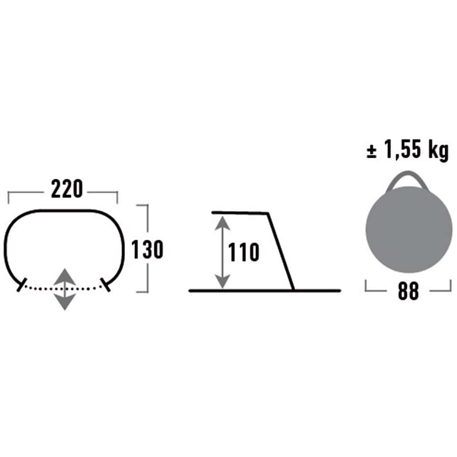 - – Wymiary po rozłożeniu 240 x 220 ( + 140 cm przedsionek )