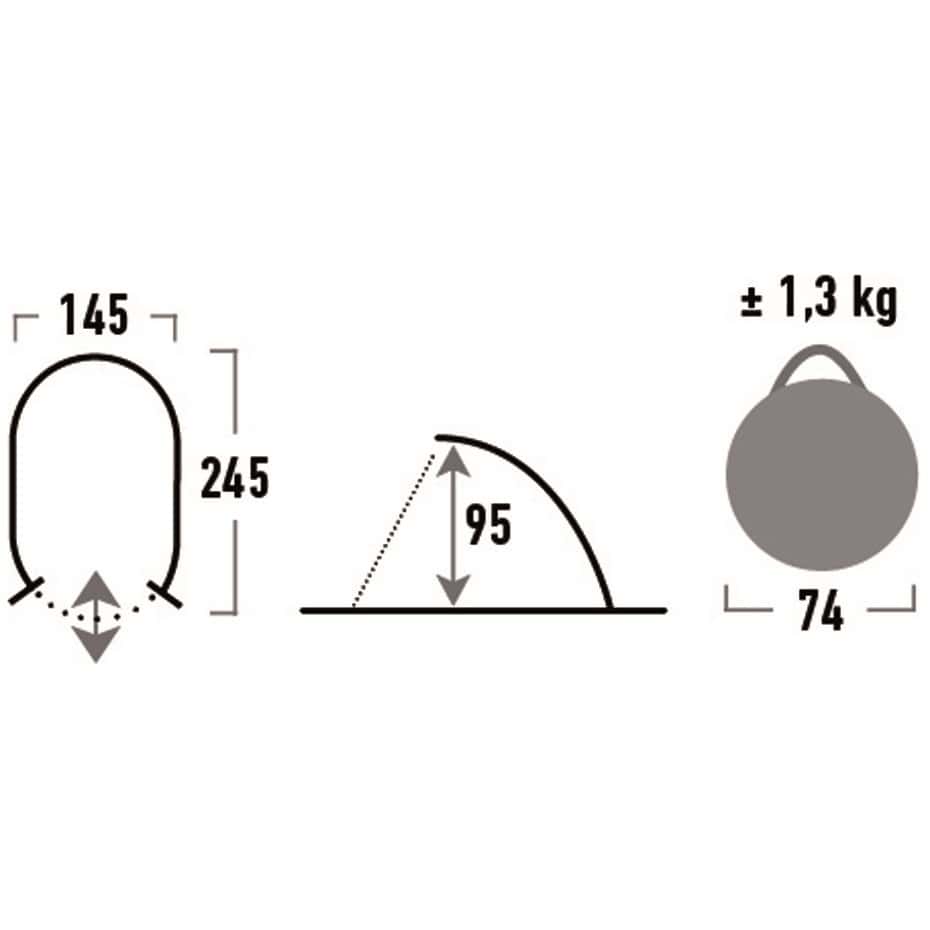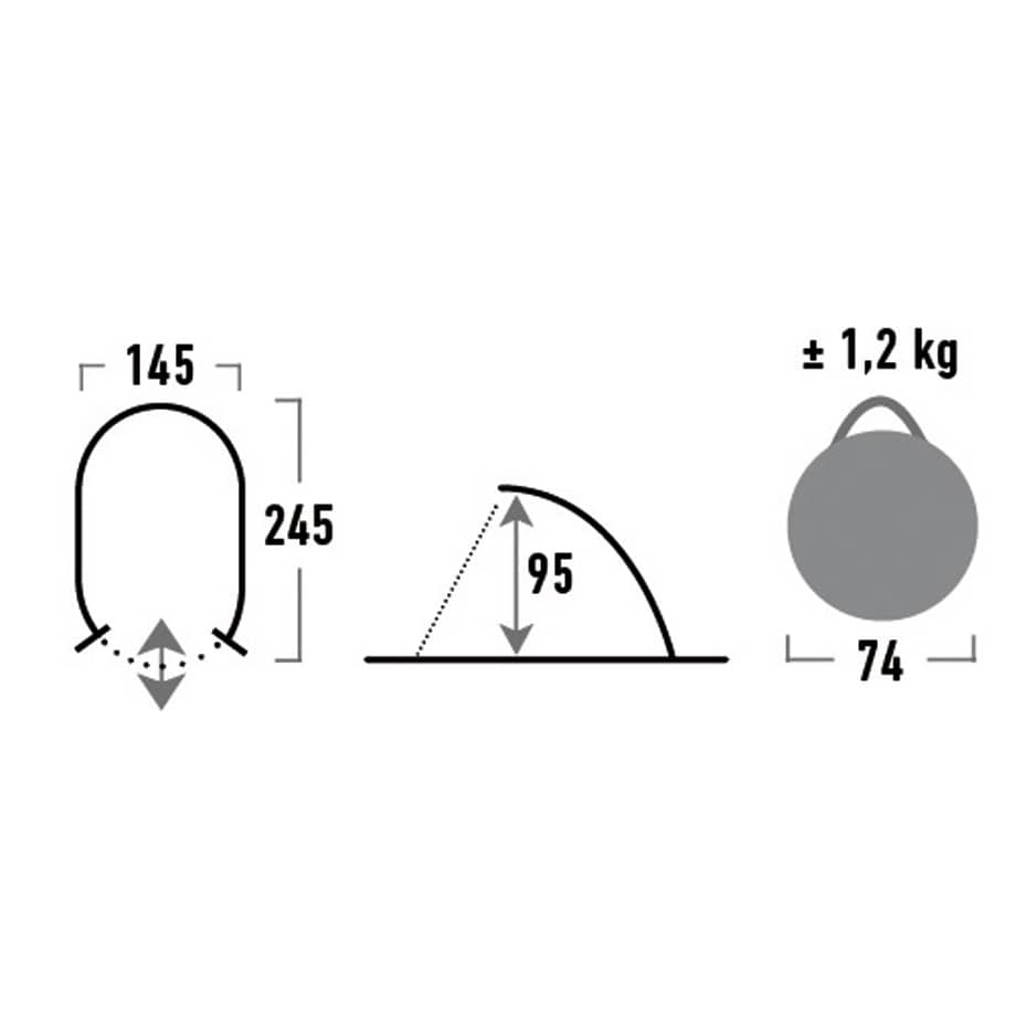 Namiot biwakowy dwuosobowy typu igloo od firmy High Peak. Jego niewielka waga sprawia że jest łatwy do przetransportowania. Wykorzystany materiał jest wysokiej jakości i w namiocie jest wentylacja która zapewnia komfort korzystania z Monodome 2